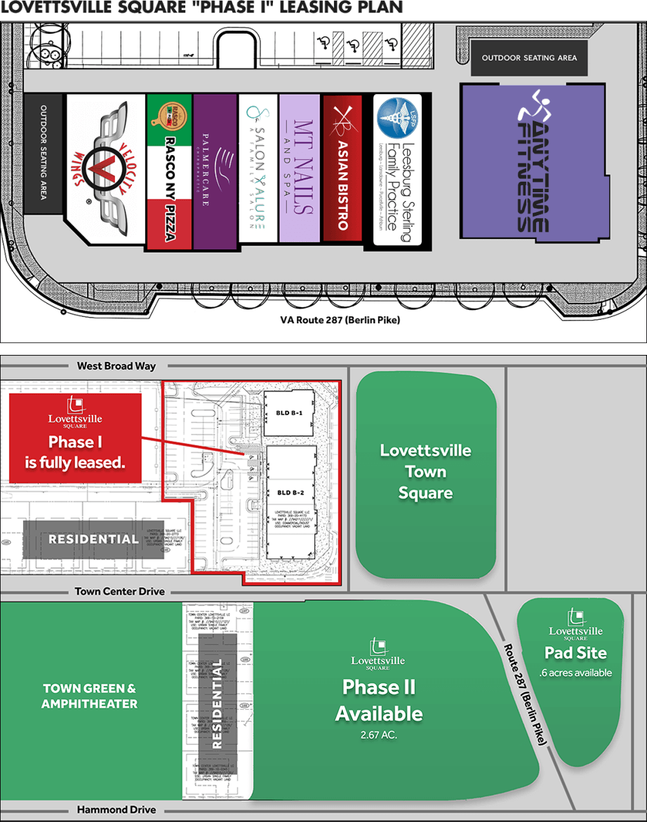• Lovettsville Square is a dazzling neighborhood shopping center venue with vivid “Town Center” appeal – conveniently located in the heart of Lovettsville, VA (Loudoun County).